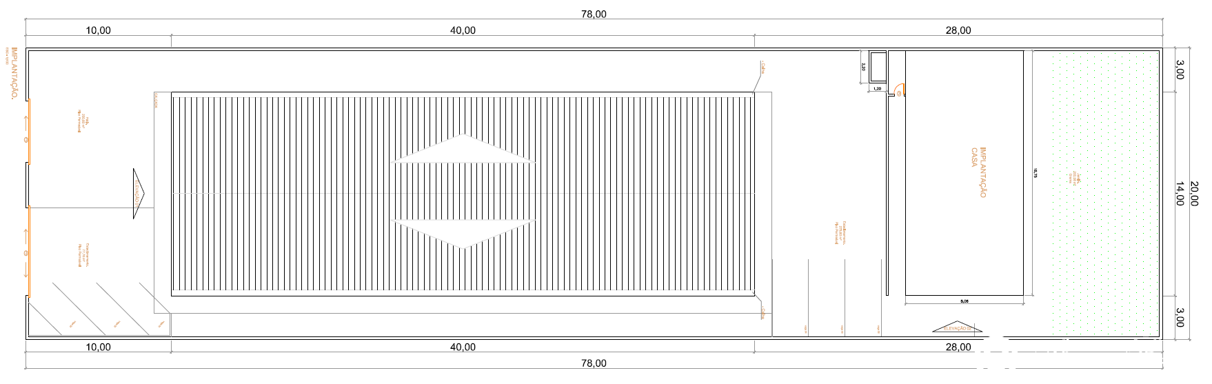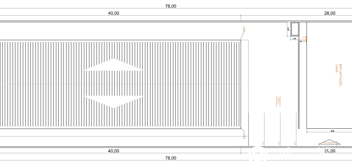 Dimensões do terreno: Frente 20m x Comprimento 78m