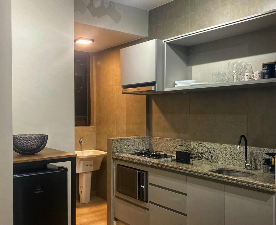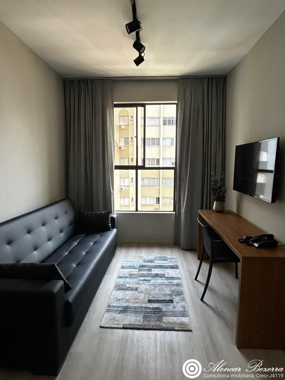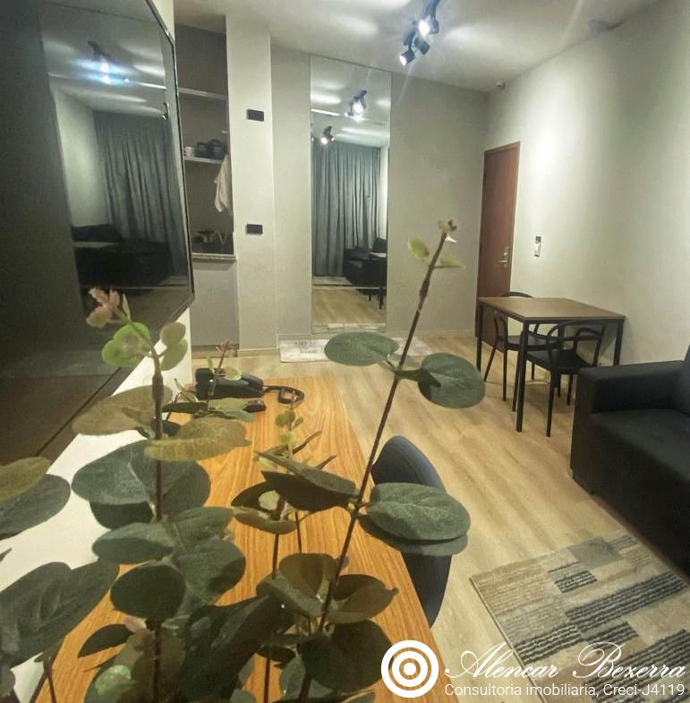 O imóvel conta com sala, banheiro, 1 dormitório, cozinha, área de serviço e 1 vaga de garagem rotativa. O Edifício oferece uma infraestrutura completa, incluindo recepção 24h, TV a cabo, Wi-Fi, restaurante, academia, piscina, lavanderia e serviços de limpeza, proporcionando comodidade e praticidade para o dia a dia.